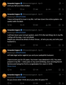 Ungaro, a Brazilian-born former model, recently posted a series of cryptic and threatening messages directed at the First Lady on social media. In one now-deleted post, she warned Melania to “be careful,” sparking widespread speculation online.