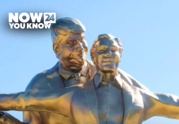 A strange and controversial sculpture has recently sparked attention online after photos began circulating of a gold statue showing figures