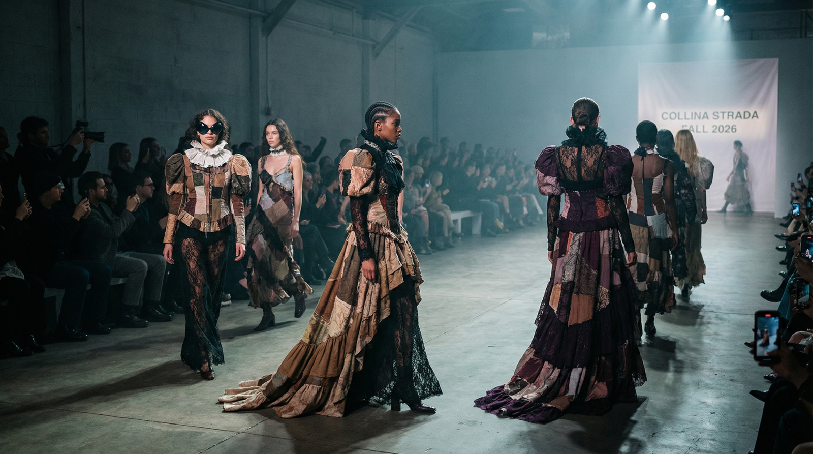 Hillary Taymour showcased her Fall 2026 Ready-to-Wear collection under the title “The World Is a Vampire,” highlighting a fusion of gothic aesthetics and sustainable practices. The presentation drew enthusiastic support from attendees, many wearing the designer’s signature bug-eye sunglasses even as night fell. Taymour, who has carved out a distinct niche similar to designers like Marine Serre, continues to expand her brand through unique collaborations and accessories such as enamel rings and partnerships with Puma, Vans, and Ugg.