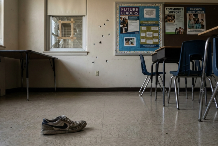 During the trial of Colin Gray, who is charged in connection with the shooting at Apalachee High School, the jury was presented with a series of photographs from the scene of the incident. The images included items such as a shoe, bullet defects, and various posters displayed inside the school. These visuals were used as evidence to provide the jury with a detailed perspective of the environment where the shooting occurred.