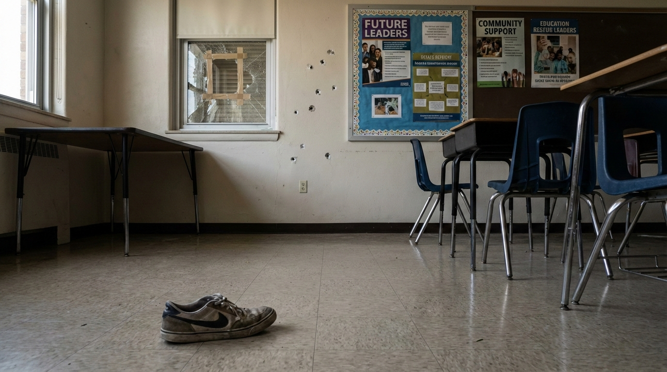 During the trial of Colin Gray, who is charged in connection with the shooting at Apalachee High School, the jury was presented with a series of photographs from the scene of the incident. The images included items such as a shoe, bullet defects, and various posters displayed inside the school. These visuals were used as evidence to provide the jury with a detailed perspective of the environment where the shooting occurred.