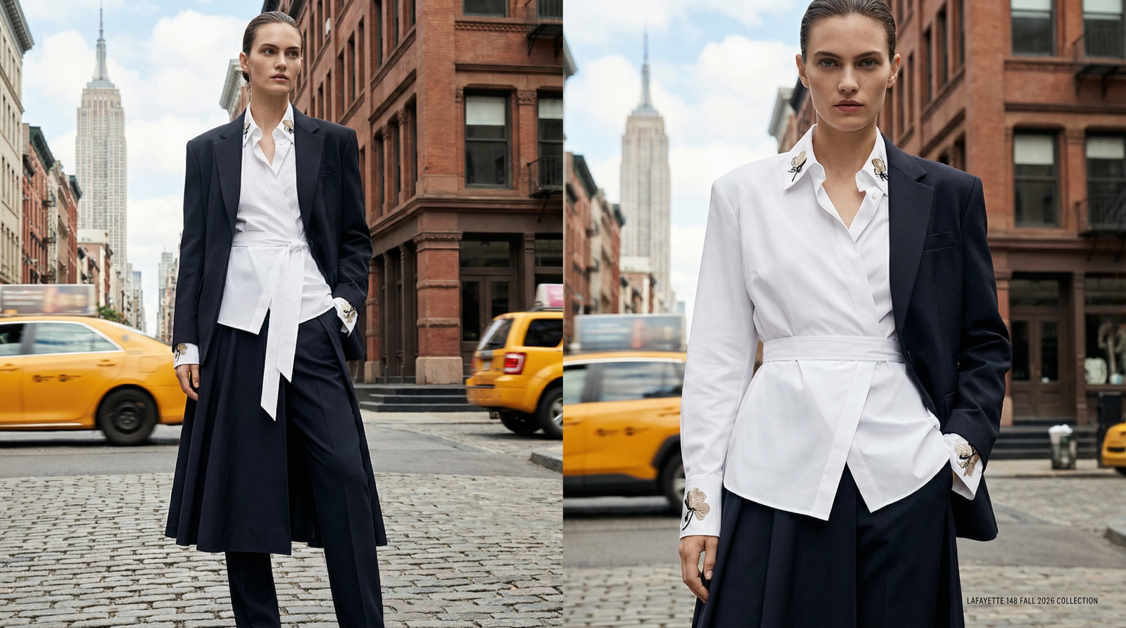 Celebrating three decades since its inception, Lafayette 148 has returned to its foundational design elements with the launch of its Fall 2026 Ready-to-Wear collection. Designer Emily Smith revisited the brand’s archives to draw inspiration from the original suiting basics that established the label’s identity, including a reimagined interpretation of the classic white button-up shirt.