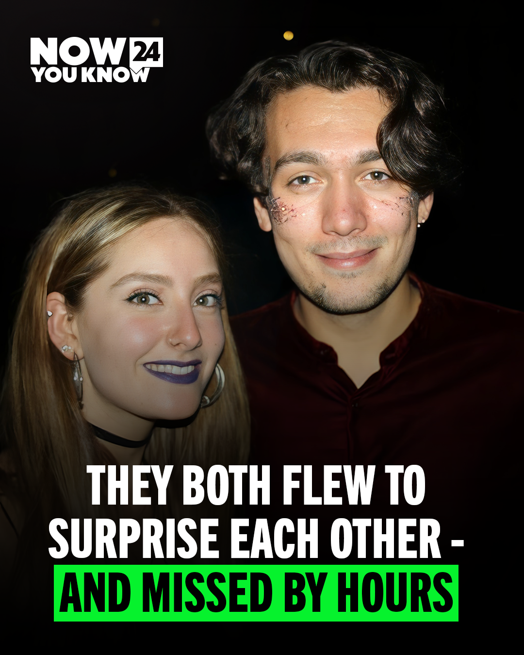 23-year-old Finlay McAfee flew from Edinburgh to Paris to surprise his girlfriend, 21-year-old Salma Saade, completely unaware that she had planned the exact same surprise and was flying to Scotland at nearly the same time.