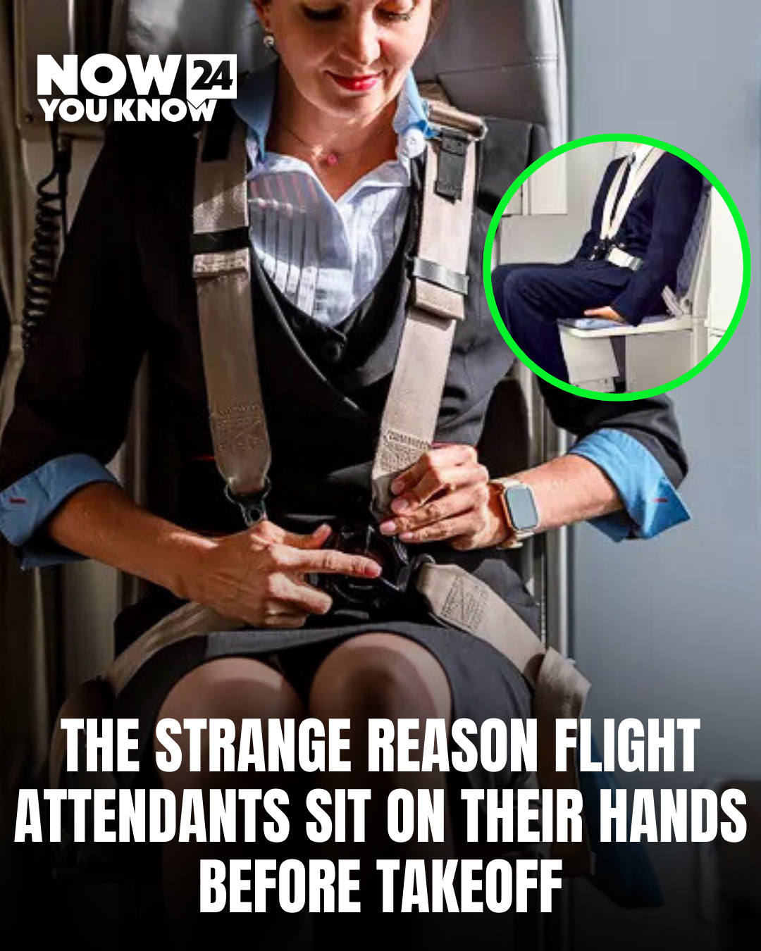 Many airline passengers have noticed something unusual while watching the cabin crew prepare for takeoff. Just before the plane begins moving, flight attendants often sit upright in their jump seats with their hands placed under their thighs.